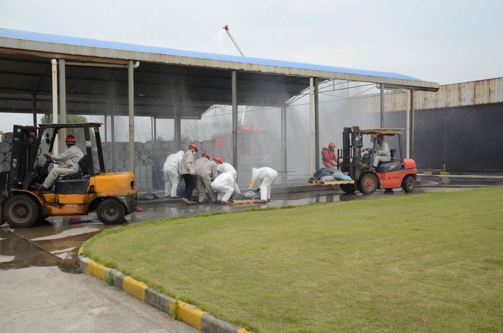 環(huán)境應急組的人員迅速要換閥門,讓事故水流入事故應急池